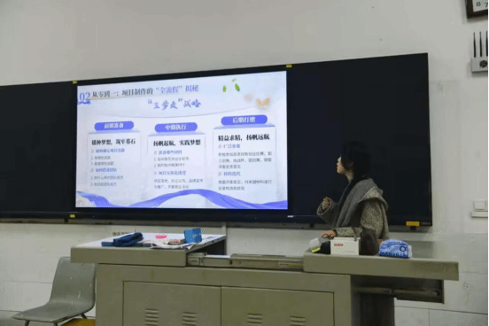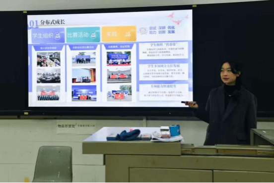 校青年创新创业发展中心副主席王晴慧以个人丰富的参赛经验为例,详细说明项目构建的全过程,包括前期筹备、中期执行及后期打磨。她强调了项目选题的重要性,结合人工智能学院专业方向提供选题思路想法,让想参与的同学积极参与其中。她还分享了一些自己在参赛过程中如何应对压力与挫折的经验,鼓励同学们在面对困难时保持积极乐观的心态,坚持不懈地追求项目的成功,让同学们在获取知识与思路的同时,也坚定了参与赛事的信心与决心。互动环节中,生命科学学院的同学们积极提问发言,问题涉及项目选题方向、成果转化、创业团队组建等多个方面,共提出了多个具有深度和建设性的问题,展现出扎实的专业知识基础和活跃的创新思维。