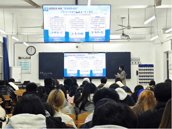 宣讲活动现场气氛热烈,学生们热情高涨。校青年创新创业发展中心副主席王晴慧做赛事解析,她强调创新创业教育的重要性,概述了“卓越杯”创新创业大赛、中国国际大学生创新大赛等赛事亮点。同时详细阐述了创业扶持政策和项目基地入驻流程,彰显了国家与学校对学生创新创业能力培养的高度重视。