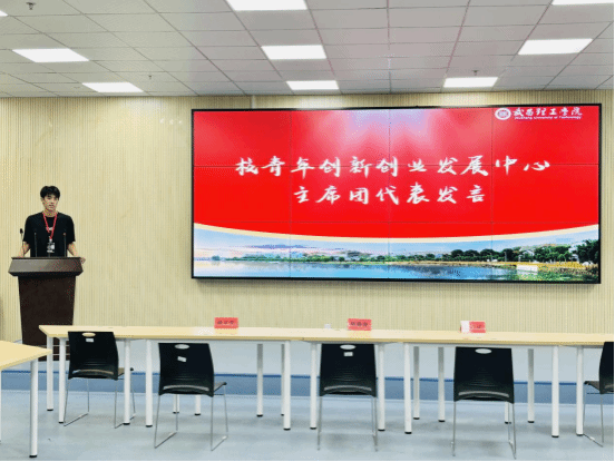 校青年创新创业发展中心主席团代表李延强随后上台汇报新学年工作计划,明确重点任务。他坚定地表示,将带领团队紧密围绕学校部署开展工作,确保每一项任务都落到实处、追求卓越。